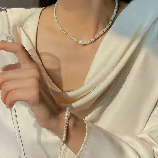 Natural Stone & Pearl Bead Bracelet